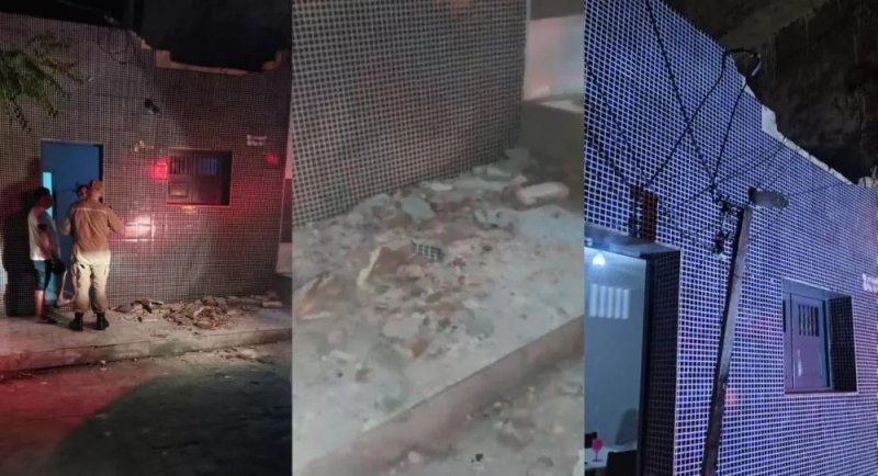- Trio elétrico atinge cabo elétrico e provoca desabamento parcial de casa, ferindo mulher e bebê em Patos (Foto: Reprodução/4º BBM)